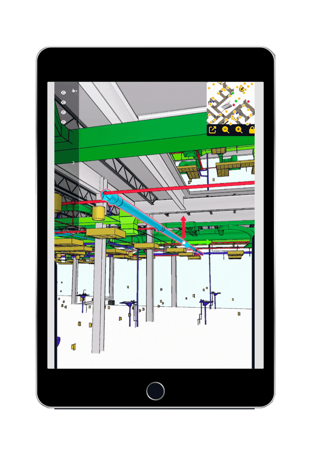 Les fonctionnalités NEXT-BIM ont été conçues pour optimiser les implantations et les flux, en permettant de visualiser, déplacer et ajuster les équipements industriels directement sur site. Grâce au Viewer, aux outils de déplacement d’objets et à la superposition RA, les équipes peuvent tester et valider leurs choix en conditions réelles, tout en anticipant collisions, problèmes d’accessibilité ou contraintes logistiques. NEXT-BIM permet de décider vite, avec précision et en collaboration, avant d’installer ou commander le moindre équipement.